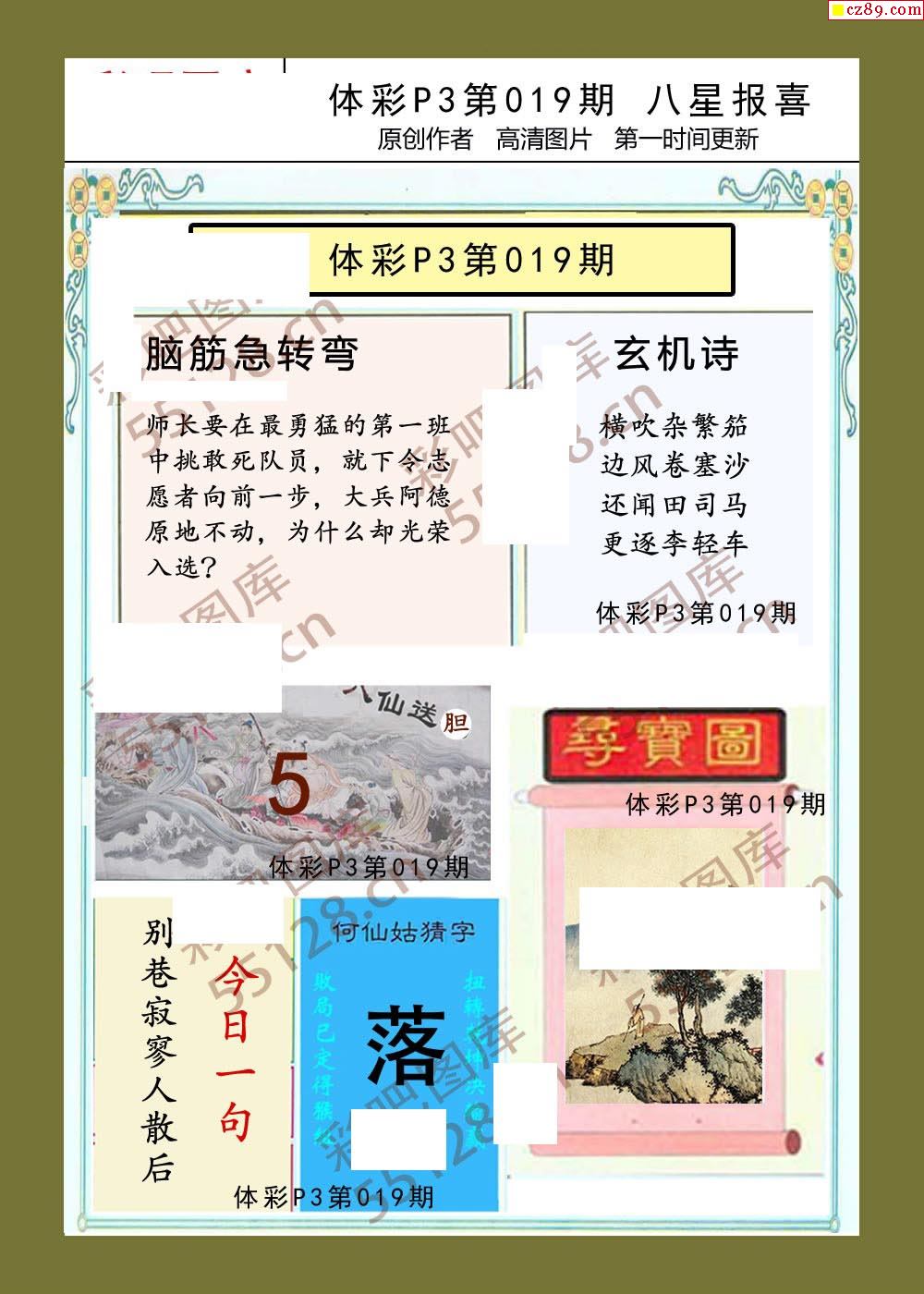 八星报喜019期体彩p3图谜