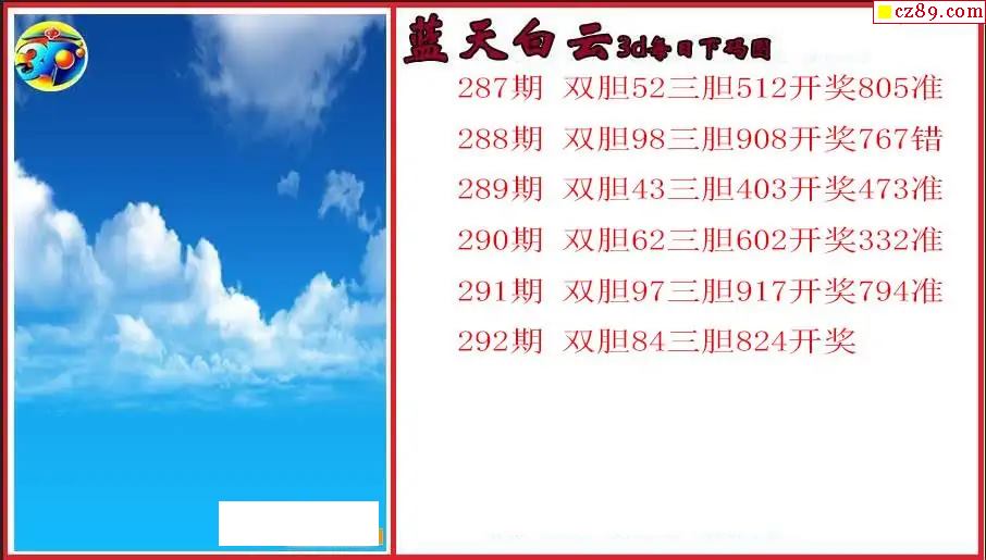 首页 > 福彩3D图谜 > 25年292期3d 蓝天白云每日下码图