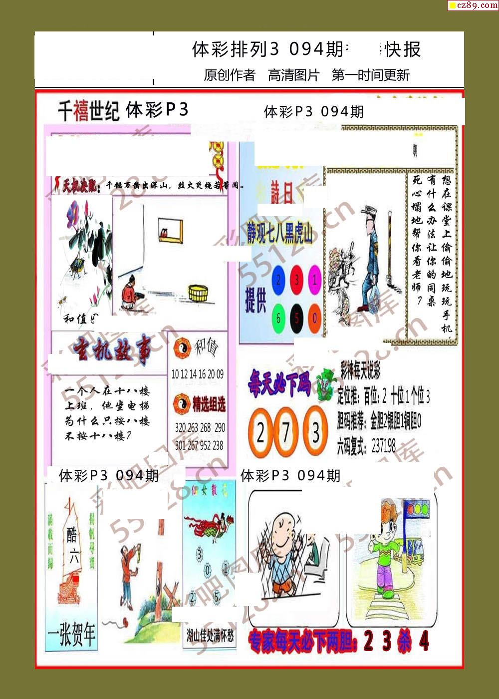 2026年094期牛彩网体彩P3画迷图谜汇总分享